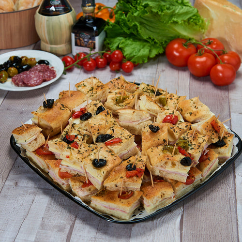 Our Focaccia Bites Platter is made with high-quality ingredients and contains 12 delicious and savory bite-sized focaccia pieces. Perfect for sharing with friends and family!