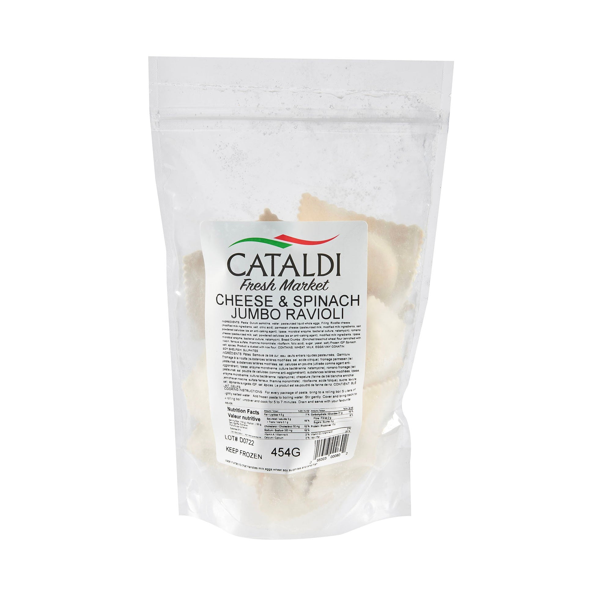 Cataldi Frozen Cheese and Spinach Jumbo Ravioli 454g
