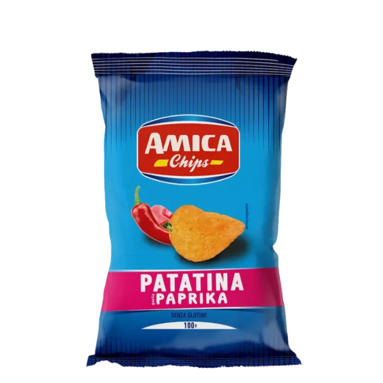 Enjoy the classic taste of Italy with AMICA PATATINA PAPRIKA chips. Made with high-quality ingredients, these gluten-free chips are perfect for anyone looking for a delicious and authentic snack. Take your taste buds on a journey with this 100G bag of Italian goodness.