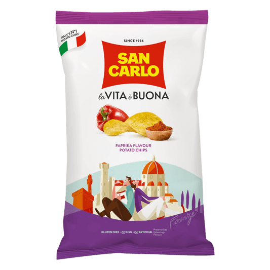 Enjoy the robust and delicious flavor of San Carlo Italian Paprika Chips. Made with authentic Italian ingredients, these chips are sure to satisfy your cravings with each bite. Perfect for snacking on the go or sharing with friends. Taste the quality of San Carlo in every crispy chip.